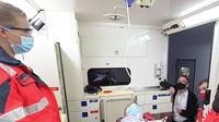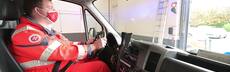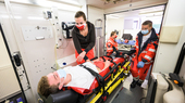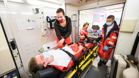 Bei der Notfallübung ist im Rettungswagen auch nicht mit Gegenwehr des Verletzten zu rechnen. Stattdessen müssen Klingelhöfer und Leon Steinhagen die Fahrt ins Krankenhaus vorbereiten.